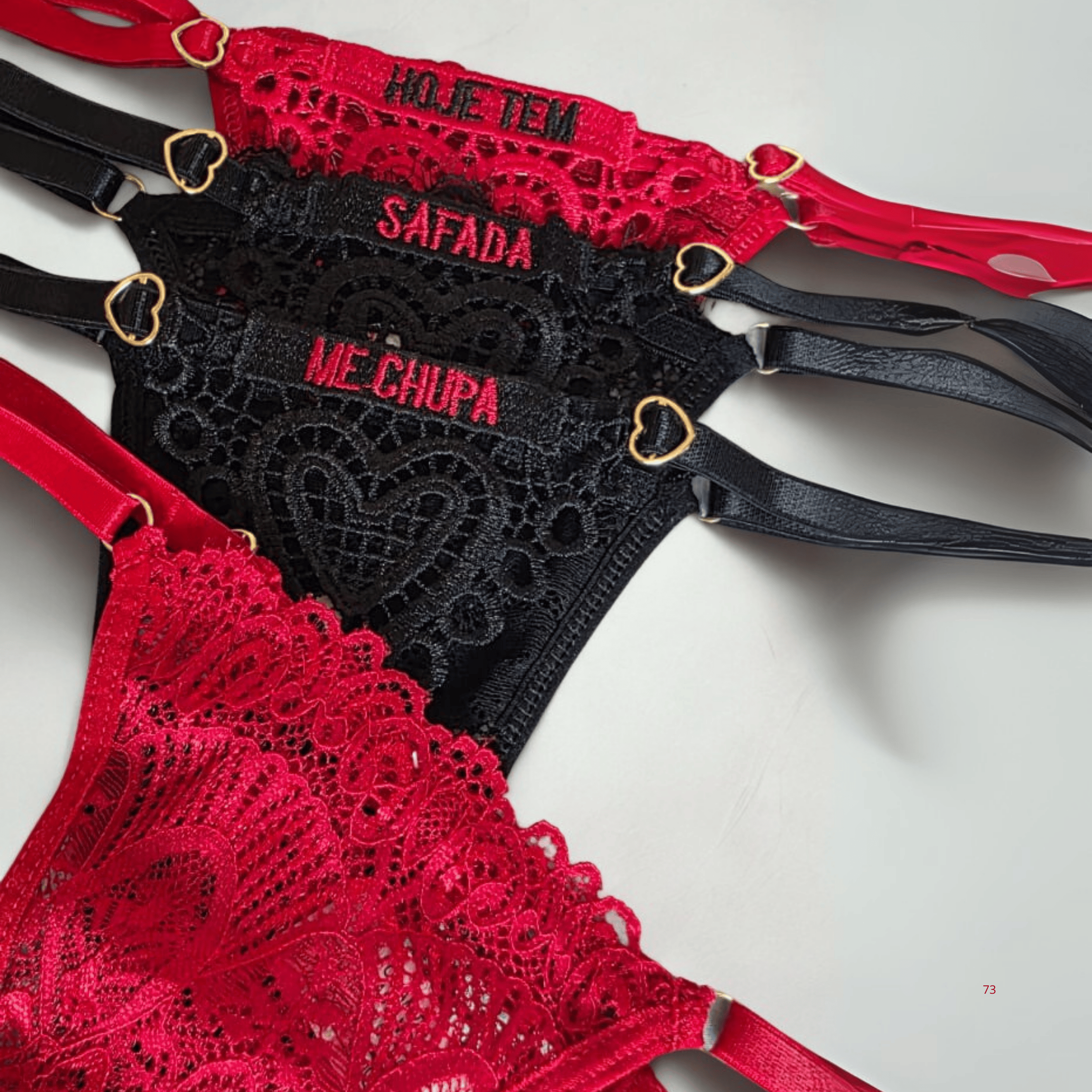 A calcinha Me Chama traz palavras bordadas que sussurram promessas e desejos, transformando o corpo em um convite ao prazer. Na parte de trás, o detalhe em formato de coração no fio realça o bumbum com ousadia e charme, tornando essa lingerie uma verdadeira arma de sedução.